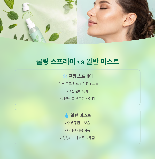 | 구분 | ❄️ 쿨링 스프레이 | 💧 일반 미스트 |